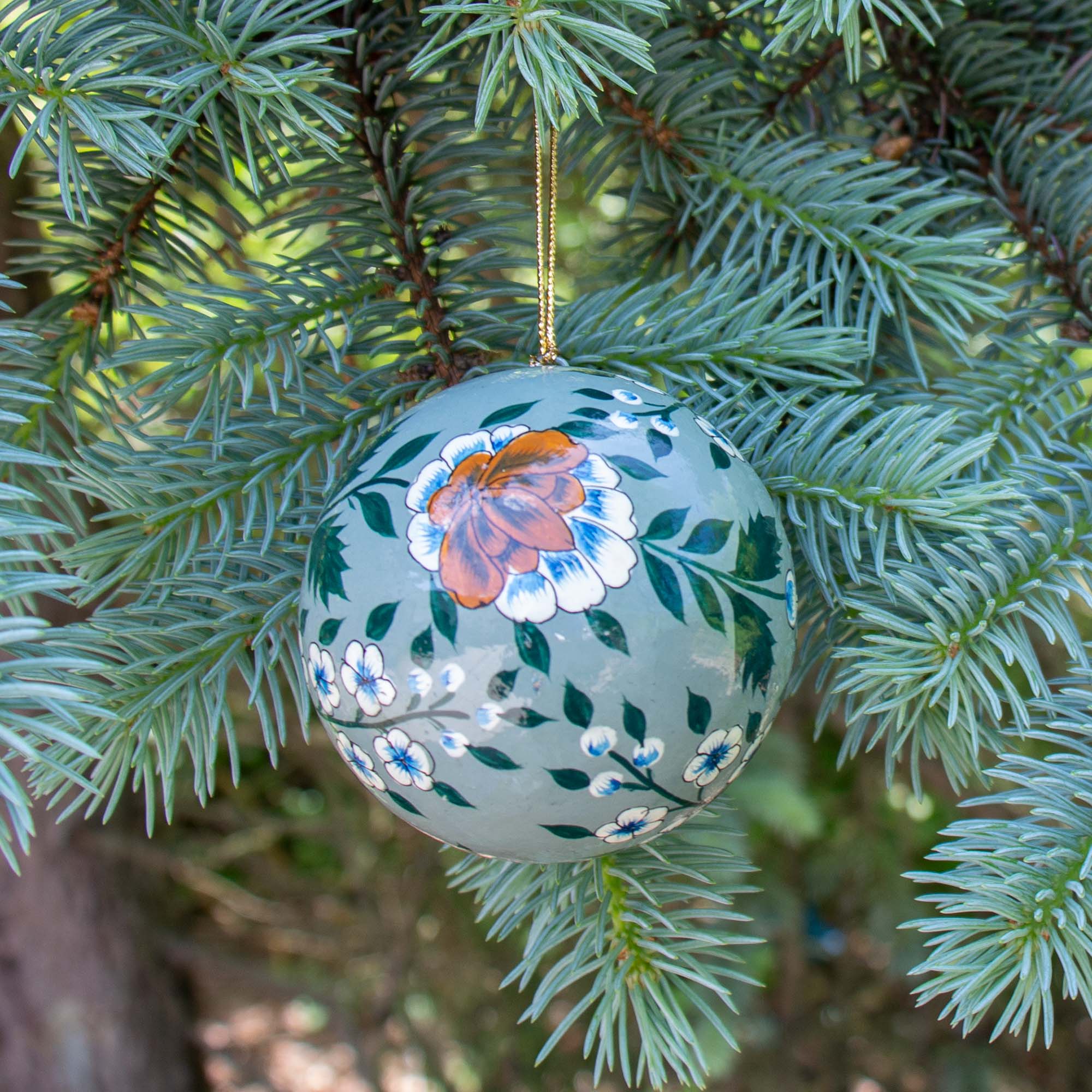 Handcrafted in India with a traditional papier-mâché technique, these beautiful hand-painted ornaments celebrate the season with bright floral and botanical designs.  Each piece is a small piece of art.
