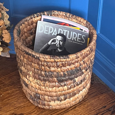 These beautiful and sturdy nested baskets are a lovely neutral accent to any decor. Handcrafted and woven from the leaves of banana trees in Kenya, these are beautiful and very durable. Banana fiber is a sustainable material that has a tortoise shell finish. These are very durable and can serve many purposes: waste basket, shoe holder, magazine basket, decorative, umbrella stand. Sky is the limit!